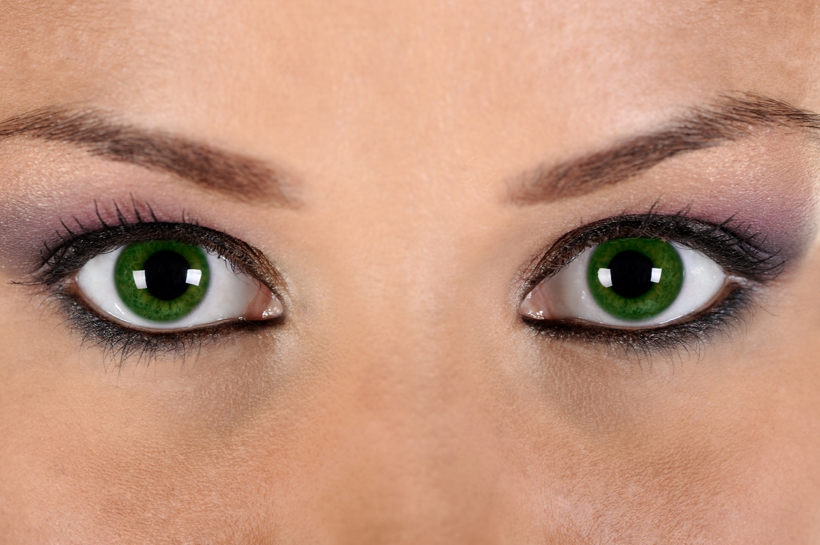close up of beautiful green female eyes after makeup treatment
